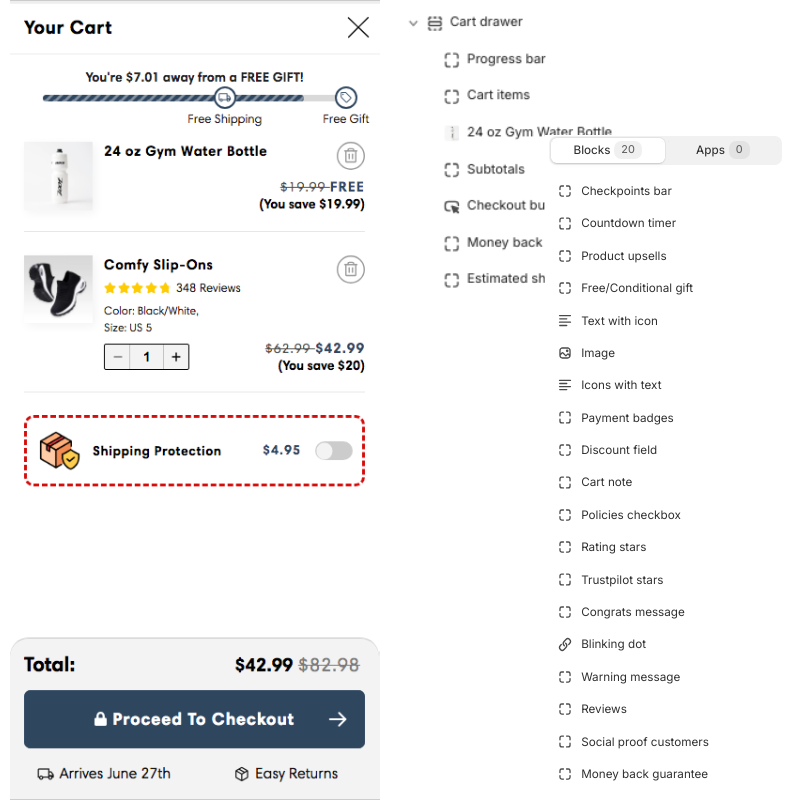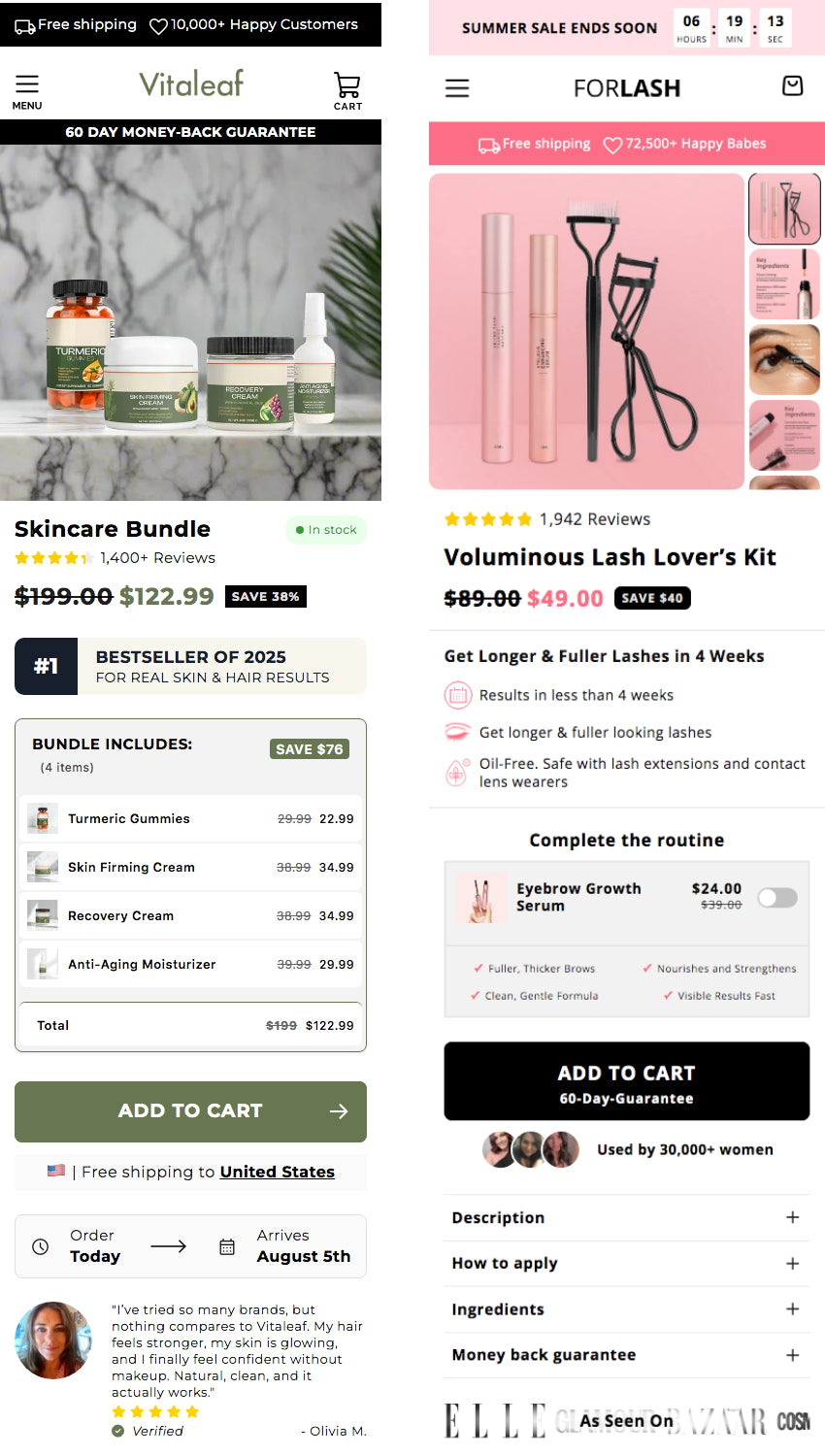 Boost conversions with secure payment badges, trust seals, countdown timers, and free shipping indicators. Create a sense of urgency and eliminate buyer hesitation.