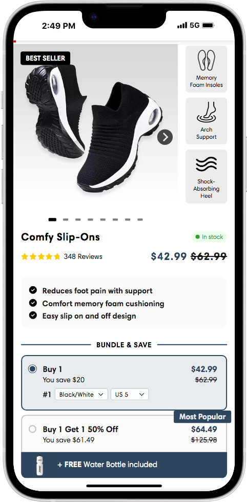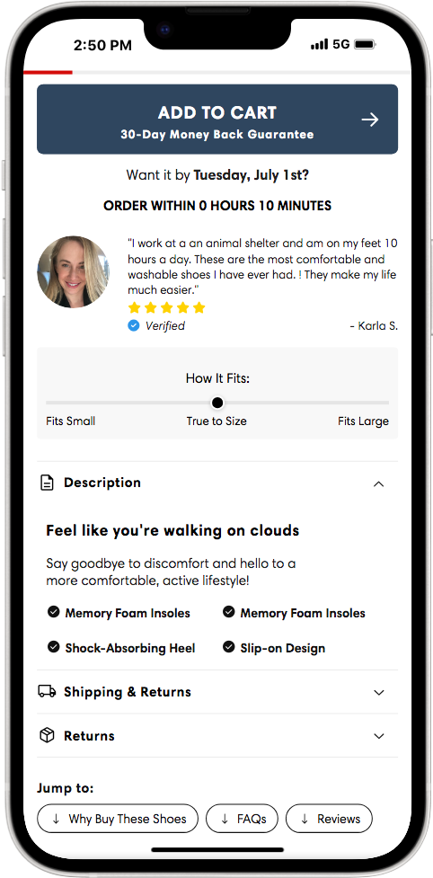 Turn product features into scannable benefits with eye-catching icon bullets. Highlight shipping, materials, or guarantees using any of 2500+ built-in icons - all designed to catch eyes and boost conversions.