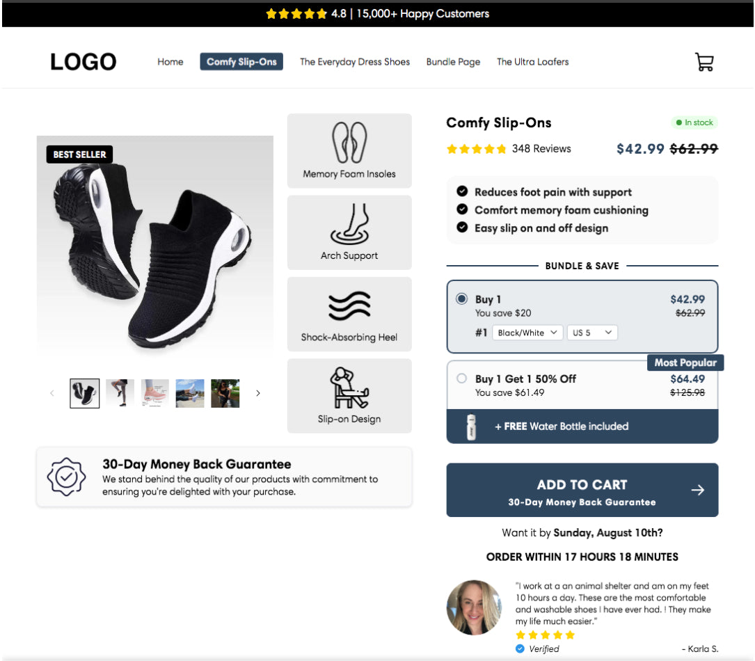 Boost conversions with rating star badges, trust seals, featured reviews, badges and much more. Create trust across your product page so customers feel comfortable purchasing from you.