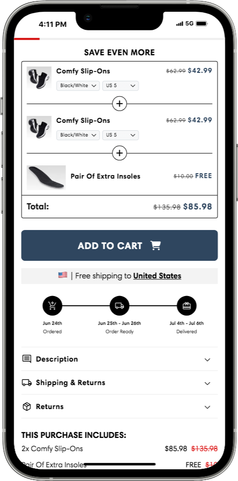 Boost AOV with offering quantity breaks/discounts if a customer purchases more than 1 quantity. Example: Buy 2, Get 1 Free.