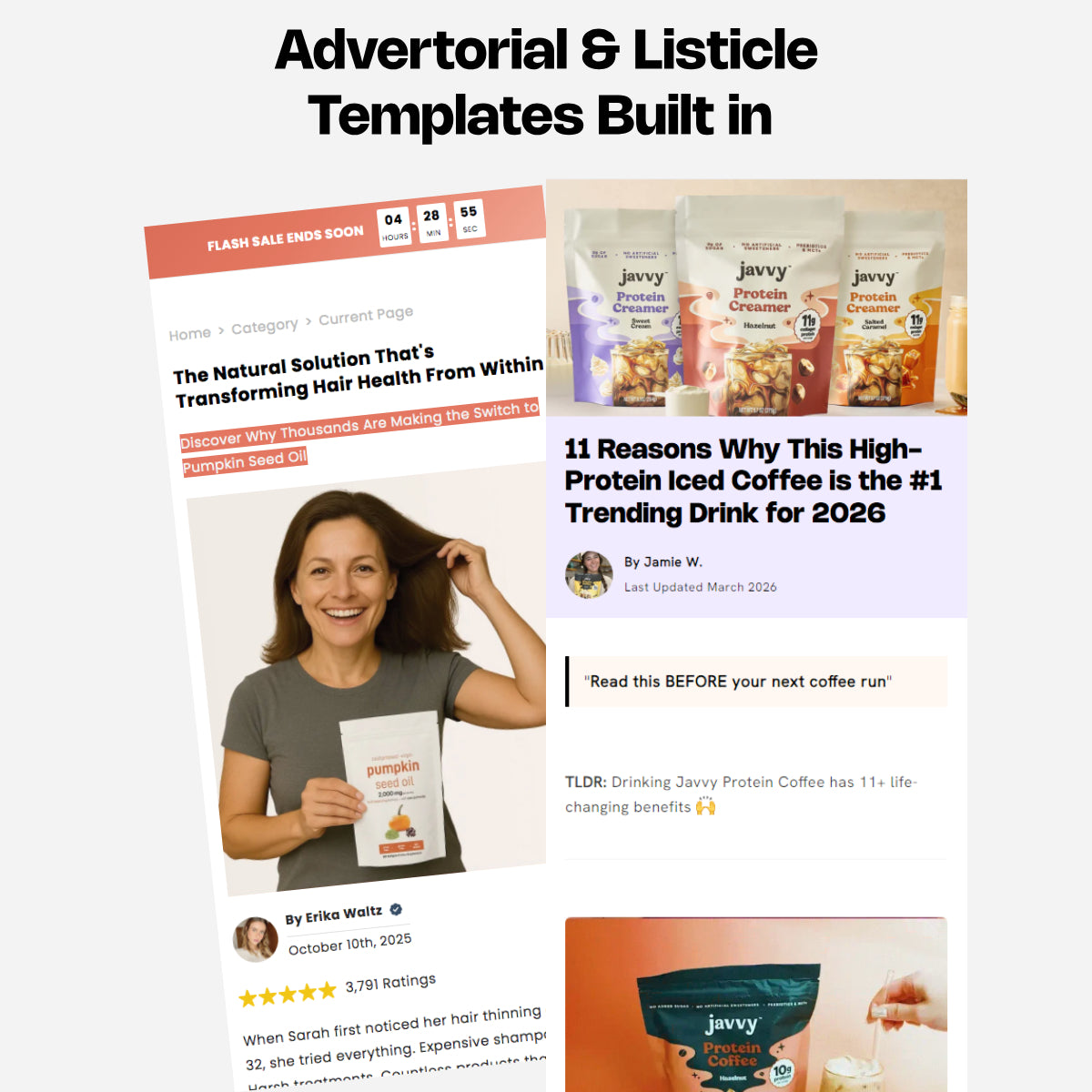 Turn cold traffic into buyers with conversion-focused advertorial and listicle layouts. Educate your customers.
