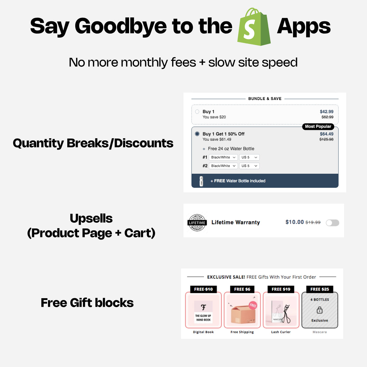 Ascendify has upsells, bundles, quantity breaks, and 100+ conversion tools built in. No apps. No code. Just more revenue.