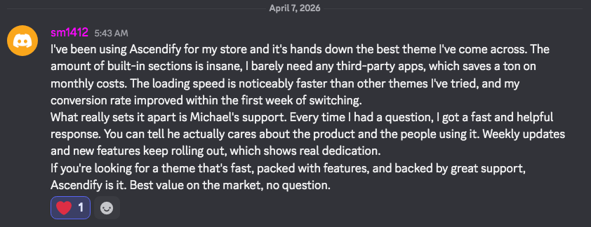 The Ascendify Theme is built based off 7 & 8 figure brands — so while most themes rely on basic templates with limited customization, minimal CRO-tested elements, and generic layouts that make every store look the same, Ascendify is engineered differently.