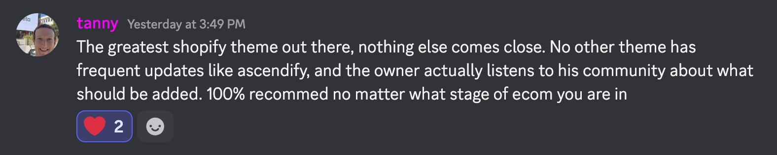 Our theme evolves based on real user feedback from our community. Every feature request is carefully reviewed by our team of Shopify developers, and the best ideas make it into the theme for everyone to benefit from.
