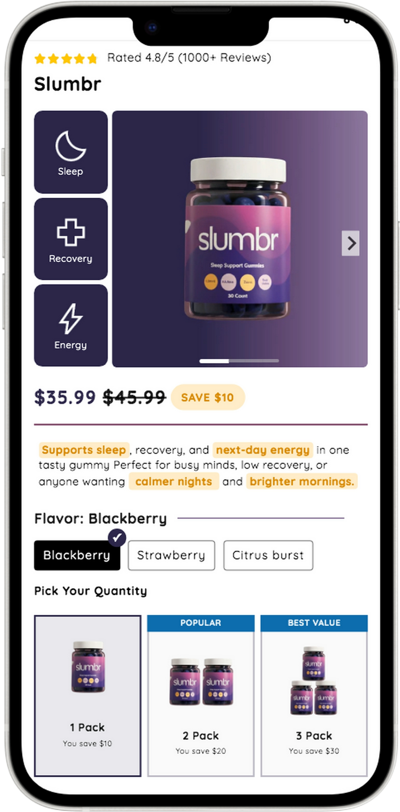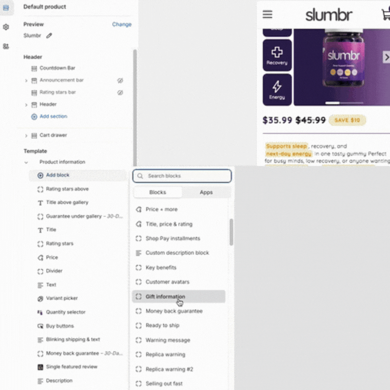 Customize your product page with 50+ high converting blocks built for flexibility and high conversion.